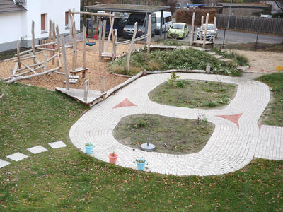 Bewegung ist als festes Element in den täglichen Abläufen enthalten. Dafür haben wir die Gruppen entsprechend ausgestattet. Die Kinder spielen überwiegend auf Teppichen und an Podesten. Sie können sich aus Schaustoffelementen eigenständig Spiellandschaften bauen. Die breiten Flächen der Sitzfenster sind besonders beliebte Spielflächen. Jede Gruppe nutzt mehrmals wöchentlich den Bewegungsraum und fast täglich das Außenspielgelände. In Kooperation mit dem Kreissportbund planen wir die Bewegungsaktionen im Jahr und den sportlichen Teil von unserem Sommerfest.